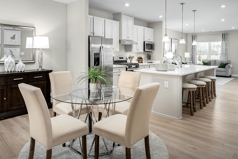 In each home, the spaces you use most, including the kitchen, dining area, and family room, are on the main entry level, so you walk in and feel at home. The villas offer true main-level living with the primary suite on the first floor. The townhomes feature the owner’s suite upstairs and include an optional elevator for added convenience. You get to choose the home that fits your lifestyle perfectly.